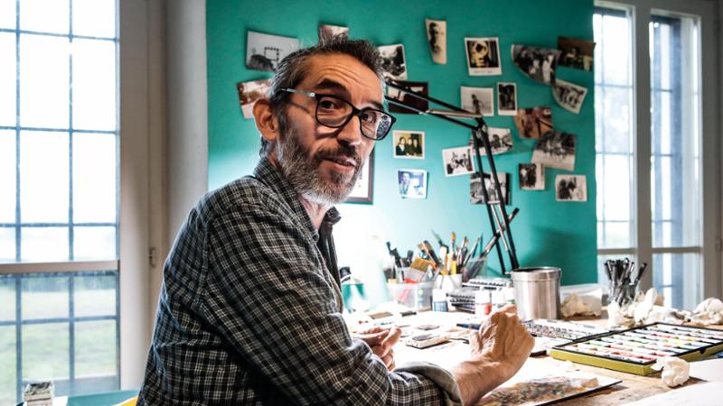 Bellissimi sono anche i suoi quadri, incredibilmente intensi nelle atmosfere: alcuni di questi sono dipinti con lamette da barba.