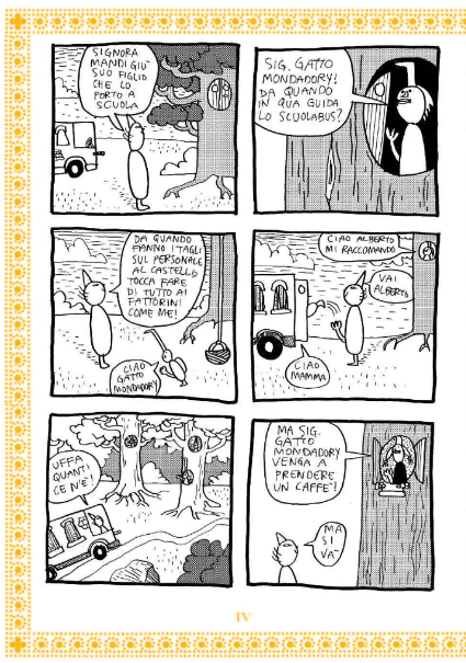 Quando a Gatto Mondadory, un gatto tibetano particolarmente pigro, viene dato il compito di guidare lo scuolabus per portare gli gnomi a scuola, nessuno si aspetta cosa succederà. Bastano poche pagine e gli gnomi sono scappati dappertutto, è già comparso Gandalf, e Gatto Mondadory è stato arruolato dal re in persona per recuperare il suo smartphone rubato. In questa trilogia fantasy, piena di nonsense e umorismo surreale, succede di tutto. Gatto Mondadory dovrà intraprendere un lungo viaggio nel paese degli zii, conoscere un borgo parlante, incontrare il muscolosissimo mago Merlino e finire nel paese dei puffi. Ma attenzione, come ogni cosa divertente che si rispetti, questo fumetto si prende molto seriamente, e questa avventura fantasy piacerà anche ai lettori e lettrici più appassionati del genere.