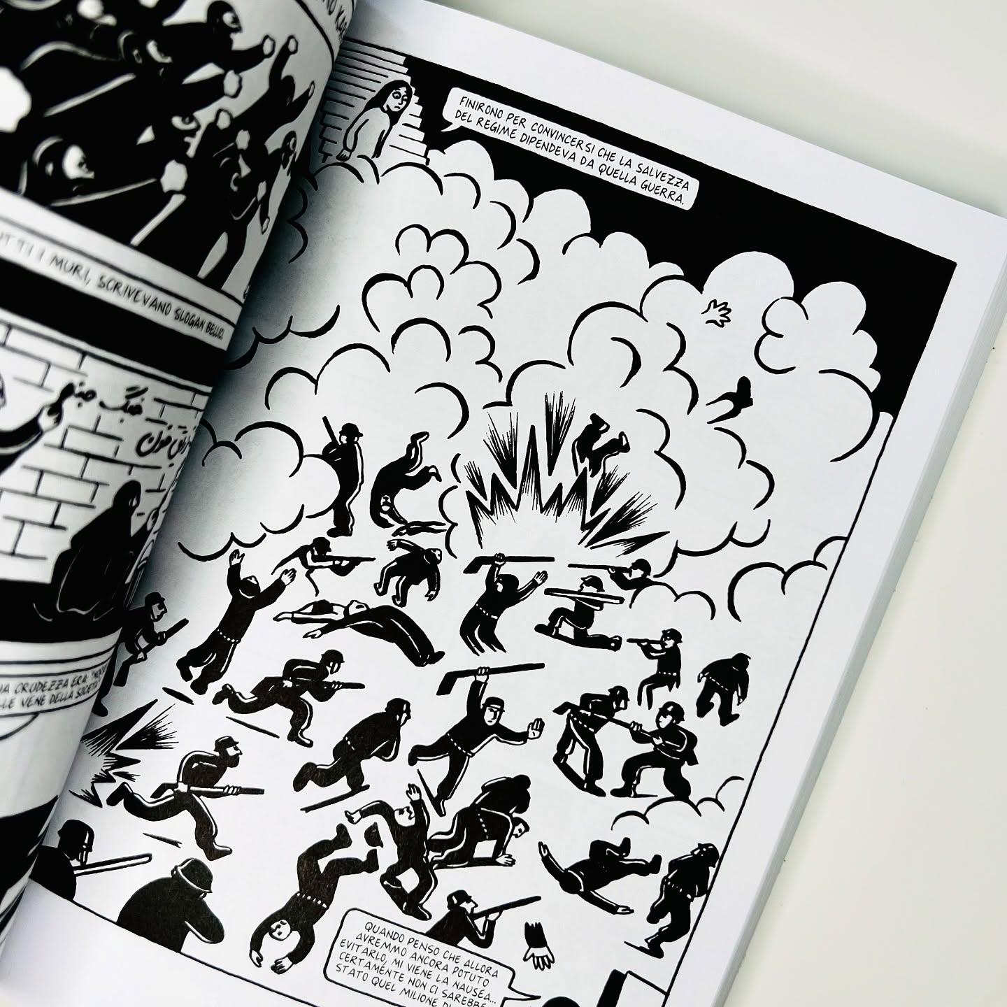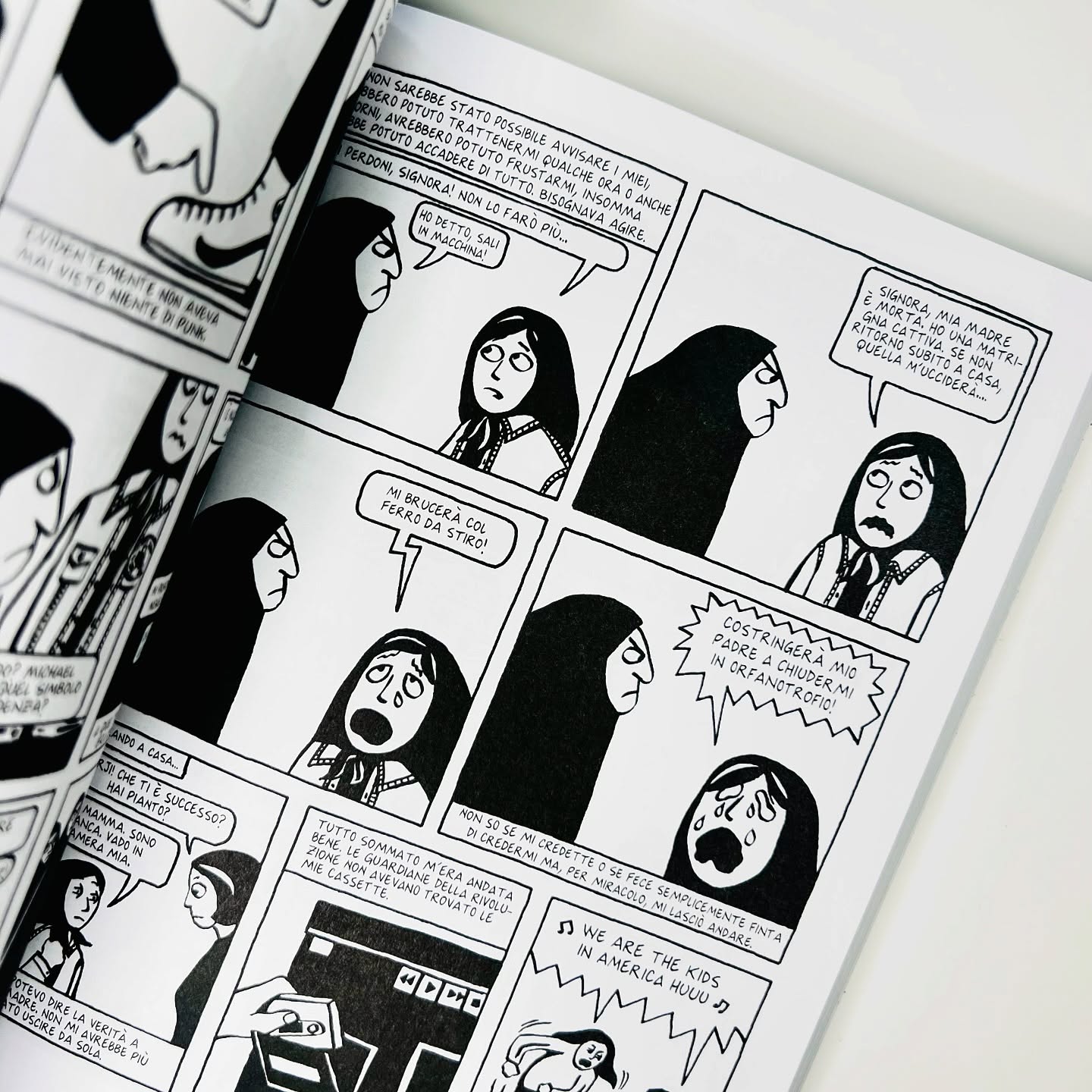 La piccola Marjane cerca con i propri strumenti di bambina di 10 anni di capire ciò che le sta succedendo attorno: molte cose non le comprende, come forse non le comprendono neanche gli adulti, incapaci di prevedere la deriva che assumerà il rivolgimento politico e sociale in corso, ma si sforza di guardare, ascoltare, leggere, informarsi con i mezzi a propria disposizione. E' la fase più cruenta della storia dell'Iran: migliaia di persone arrestate, torturate e giustiziate con l'accusa di essere oppositori del regime, e tra questi anche parenti e amici dei genitori dell'autrice.